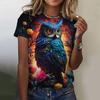 Vintage Animals Print Women's T Shirts Summer Fashion Short Sleeve Top 3d Owl Print Oversized Female Clothing Ladies Holiday Tee