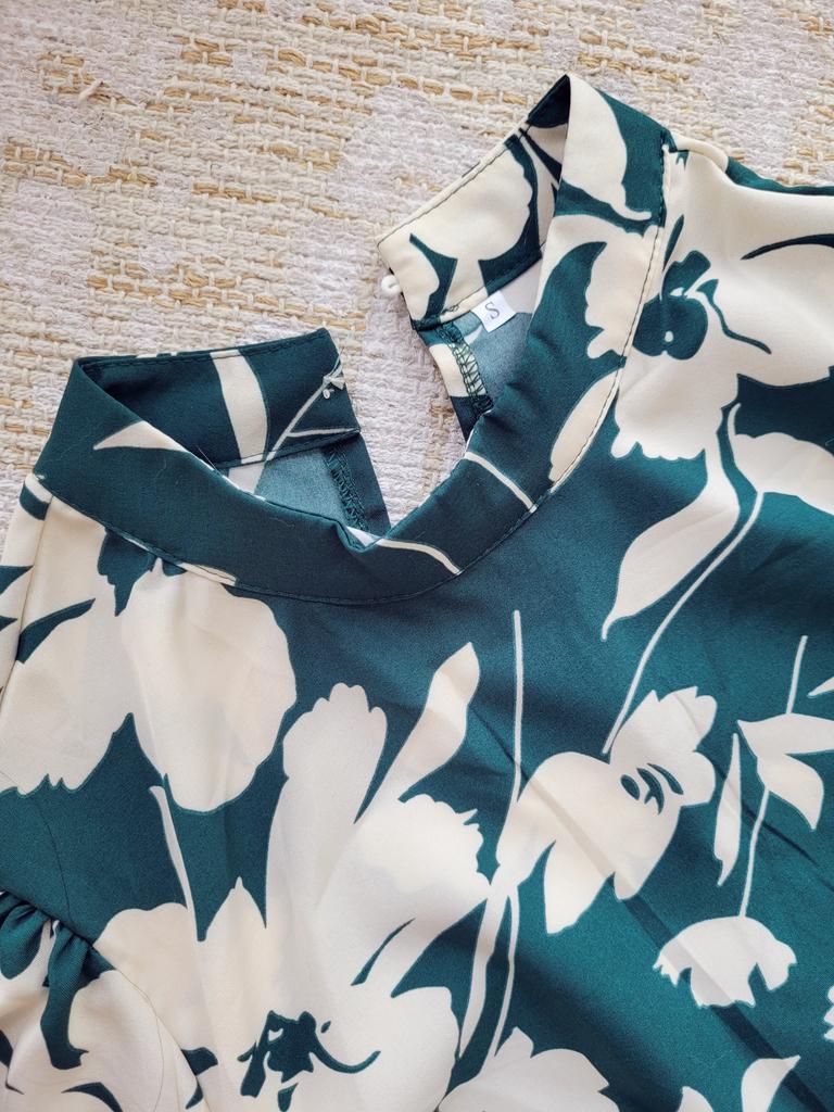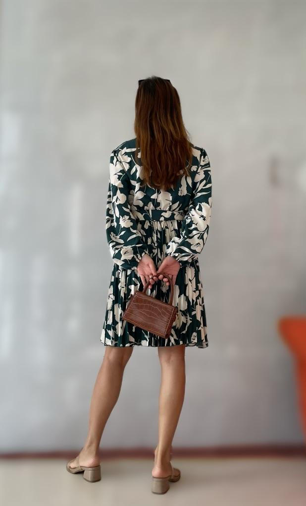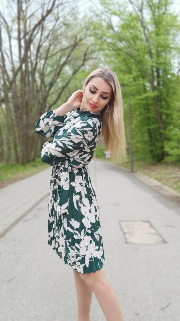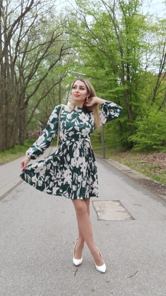 * Pleated dress with floral print * 💥𝗟𝗶𝗲𝗳𝗲𝗿𝘇𝗲𝗶𝘁 Almost 3 weeks 💥𝗟𝗶𝗲𝗳𝗲𝗿𝘂𝗺𝗳𝗮𝗻𝗴 The delivery includes 1 dress in the corresponding color and size. The dress is available in 2 different colors (black and green) in sizes S to XL. I ordered the dress in size S in green. I wear size 36 to 38. I weigh 62 kg over 172 cm. Cup size 75D. The dress fits me well, even though it isn't stretchy. 💥𝗤𝘂𝗮𝗹𝗶𝘁ä𝘁 The dress is completely opaque... I think that's important . The dress is not stretchy. A matching belt is included to beautifully accentuate the waist. The dress has a nice fit. I particularly like the floral pattern and the pleated skirt... For material composition : 100% Polyester I also find the length optimal for my height (172 cm) . 💥𝗙𝗮𝘇𝗶𝘁 Very pretty and elegant dress with pleated skirt that has a very nice fit... The belt beautifully accentuates the waist. You can order the dress in its original size. It fits true to size.