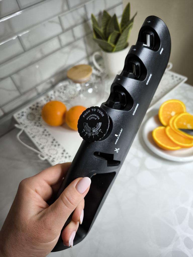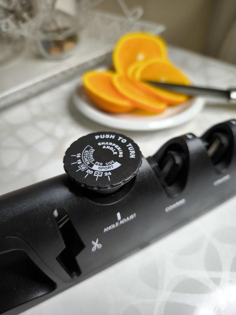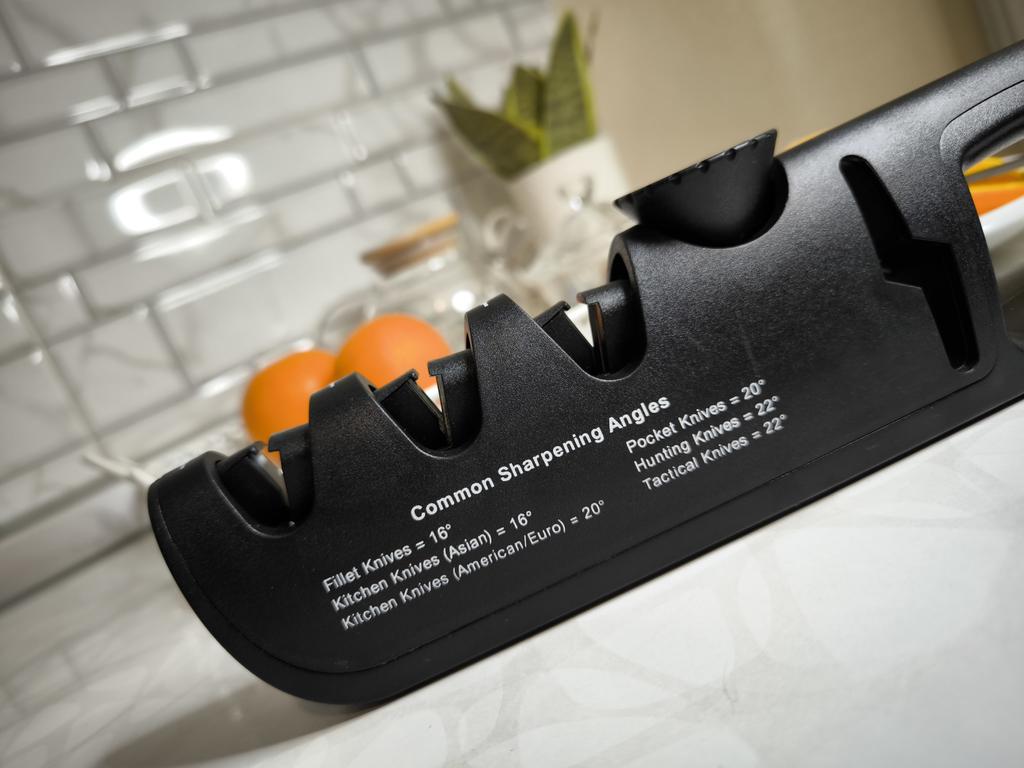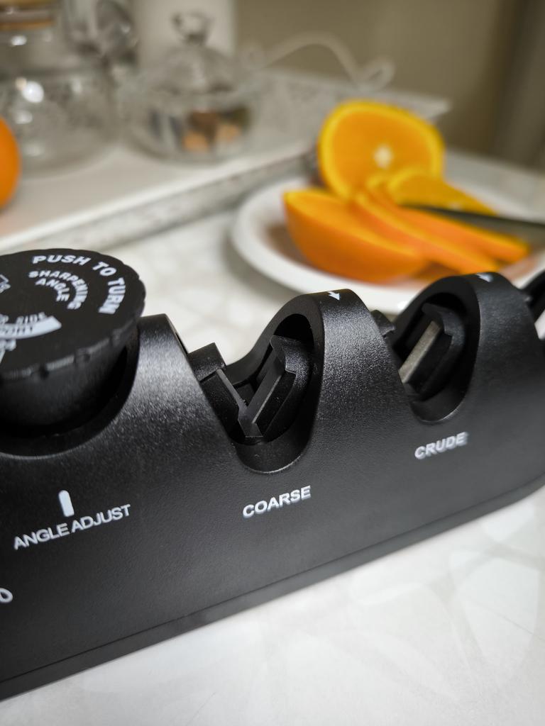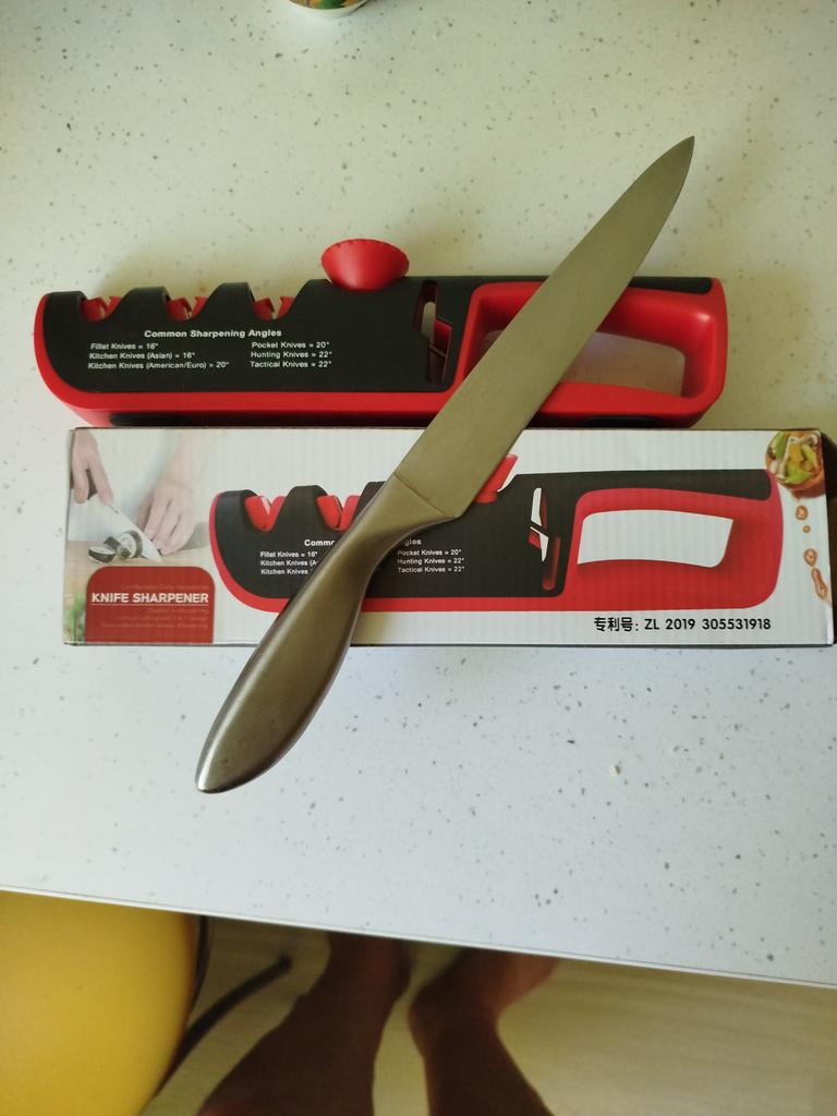 The sharpener is good. It sharpened a dead knife so that it cuts paper. And without any effort. I recommend it.