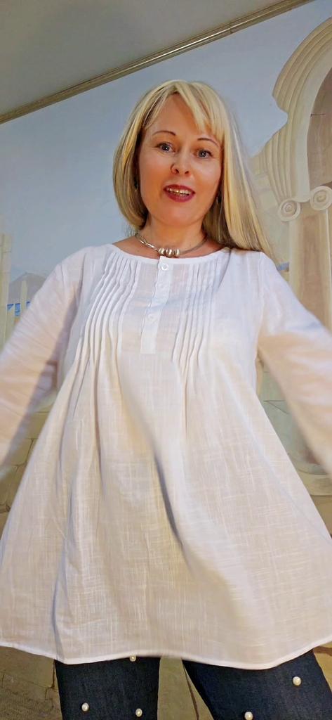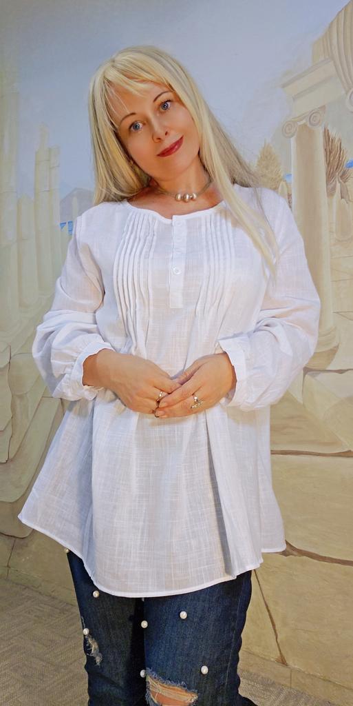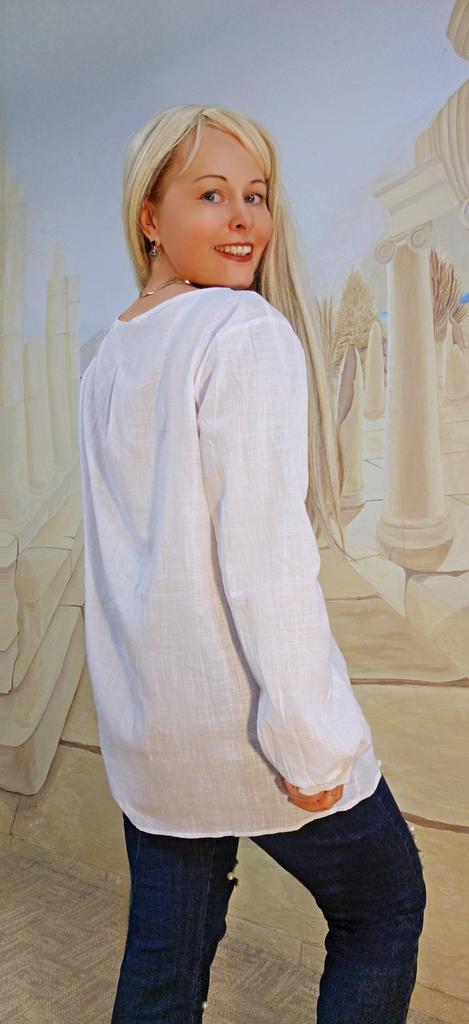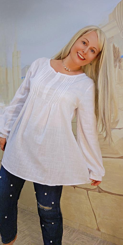 It's too short it doesn't look nothing like the photo that's on the site this is a waste cut blouse and that was a long blouse that cover the back side supposed to been a long blouse