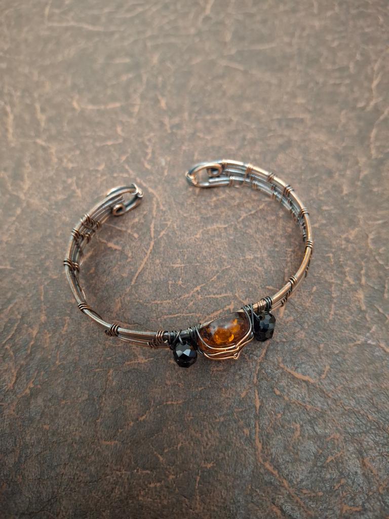 Natural Baltic Amber Handmade Copper Wire Wrap Cuff Bangle Adjustable U1q14 — buy online with free worldwide shipping!