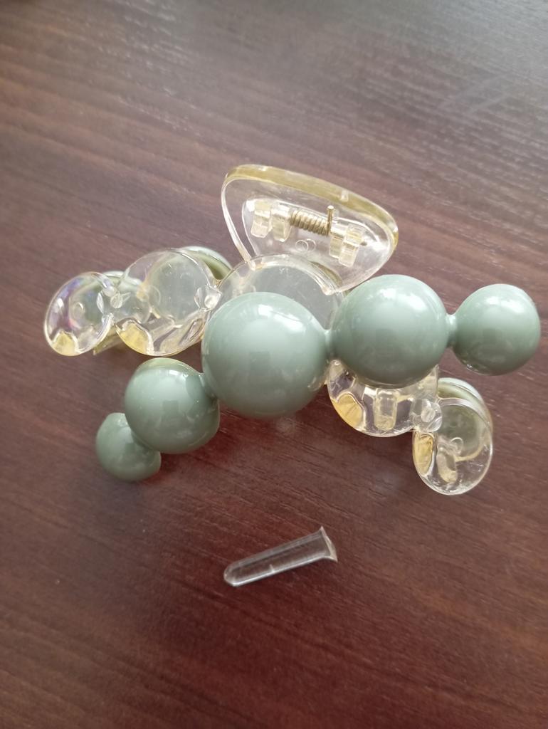 The pink and blue clip is very nice, but the green one is damaged. The balls are detached and one tooth is broken.