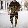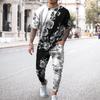 New Boutique Leopard Print Men’s Trousers Tracksuit 2 Piece Set Streetwear Short Sleeve T Shirt+Long Pants Clothes Male Clothing