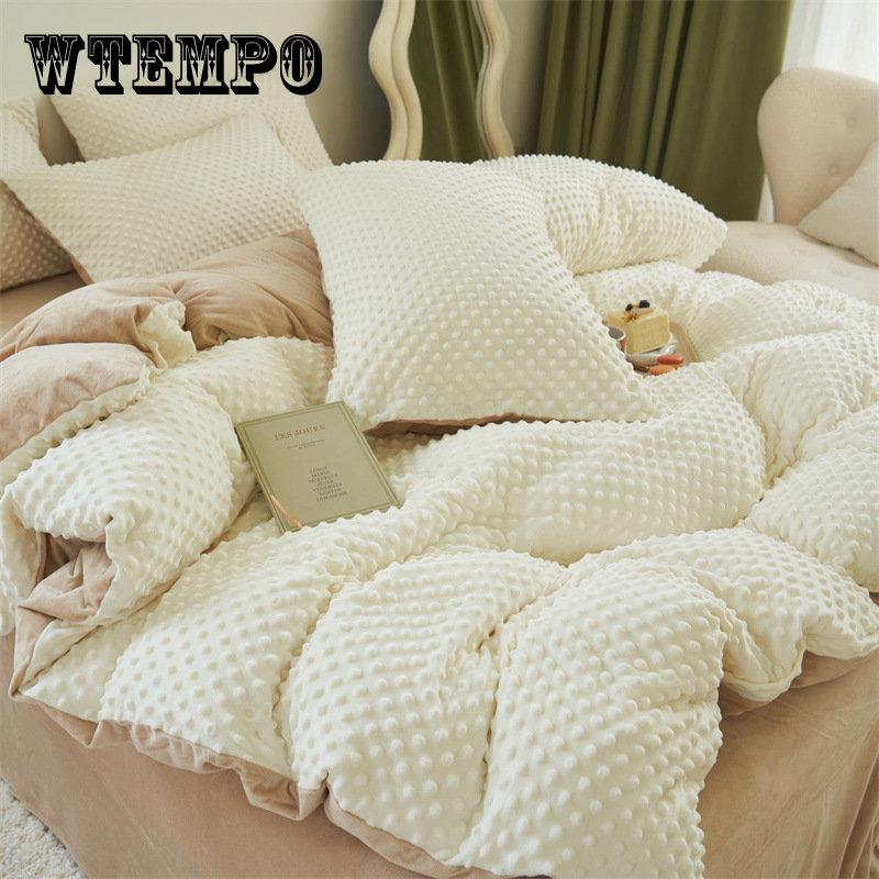 Solid Color Bean Velvet Four Piece Set, Thickened Warm Milk Velvet Bed Sheet, Quilt Cover, Flannel Bed