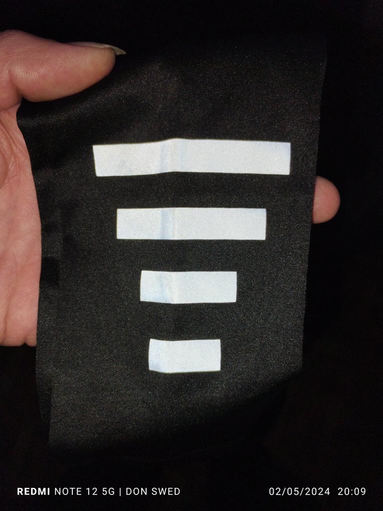Synthetic, stretch well, do not slip. They have reflective strips. Delivery is fast.