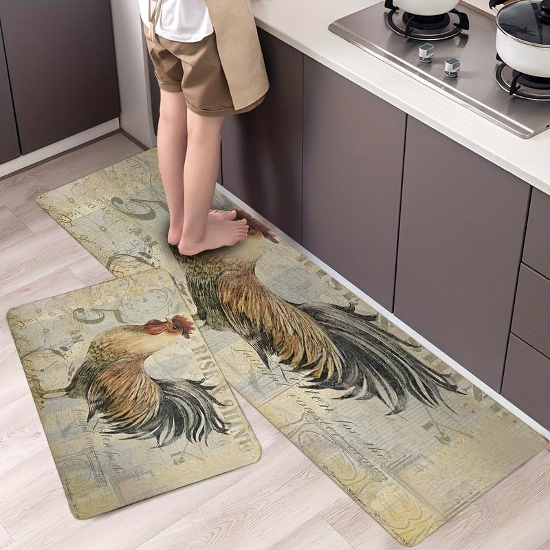 Rooster Soft Kitchen Rug Anti-Fatigue Kitchen Rug Waterproof Non-Slip Rugs Set Runner Rug Bedside Rug Absorbent Carpet For Kitchen — buy online with free worldwide shipping!