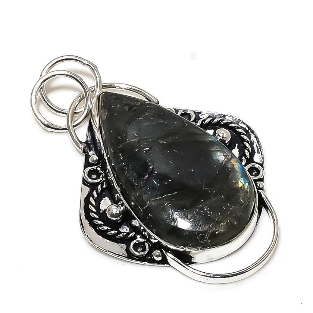 Natural Labradorite Gemstone Handmade 925 Sterling Silver Pendant 2.17"