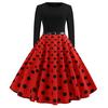 Women Vintage Long Sleeve O Neck Evening Dot Printing Party Prom Swing Dress