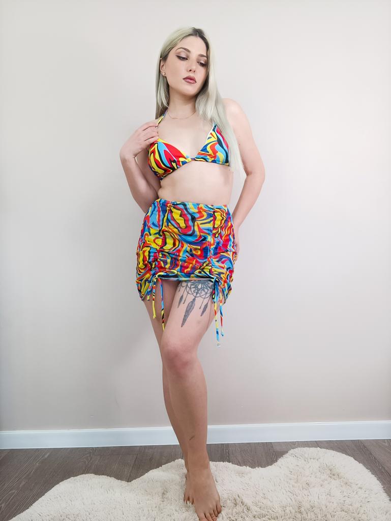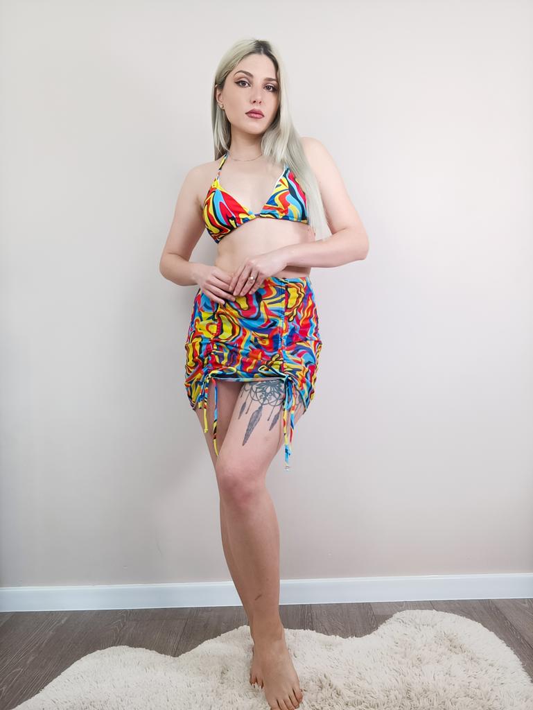 Swimsuit Women's Split Three Piece Set High Waist Sleeveless Ins Overshirt Drawstring Printed Bikini Suits — buy online with free worldwide shipping!