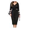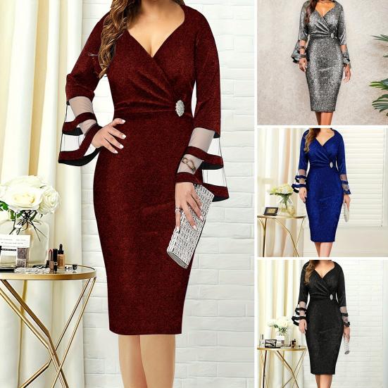 This dress features a classic pencil dress design with a high waist and slim fit, accentuated by the stylish mesh splicing and bright silk detailing. The long bell sleeves add a touch of elegance while flattering your arm and upper body. Made from 95% Polyester and 5% Spandex, the lightweight and wrinkle-free material ensures a comfortable and flattering fit. This plus size dress is suitable for evening parties, club nights, office wear, formal occasions, and everyday wear. Pair it with your favorite heels, hats, and accessories to create a fashionable party style that will make you the center of attention. Whether it's a class reunion, cocktail party, or business event, this dress is sure to showcase your unique personal charm in a sexy yet conservative way.