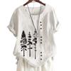Women's Cotton Casual Top with 6 Butterfly Plant Print Patterns, Round Neck, Short Sleeves