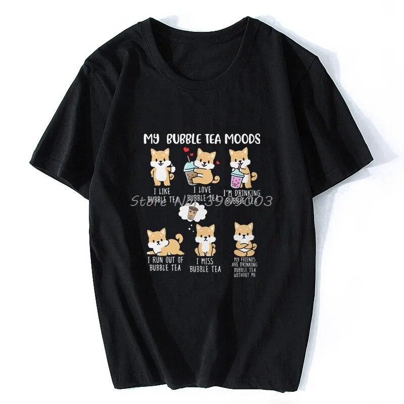 Shiba Inu Bubble Tea T-Shirt Women Boba Tea Do Essentials Print Cotton Girl TShirt Unisex O-neck Tshirt Hip Hop Tees Tops