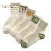 5 Pairs Women Socks Refreshing Flower Prints Mid-tube Shallow-cut High Elasticity Soft Breathable Sweat Absorption Anti-slip Girls Daily Sports Socks