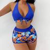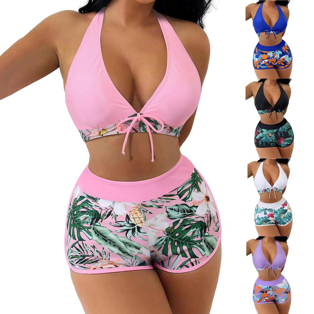 Women's Paneled Printed Swimsuit Ladies Split Boxer High Waist Swimsuit Two-Piece Set