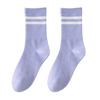 1 Pair Women Socks Mid-tube No Odor Striped Contrast Color High Elasticity Anti-slip Breathable Soft