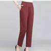 Women Summer Silk Comfortable High Waist Elastic Long Ladies Pants