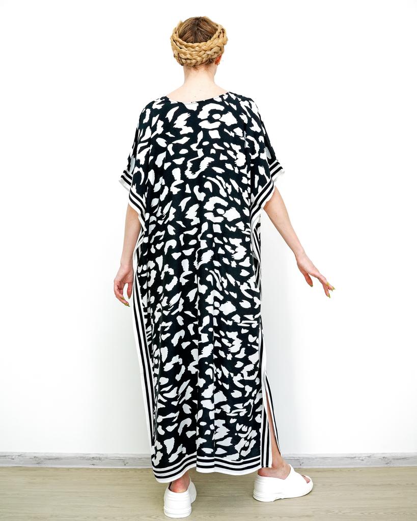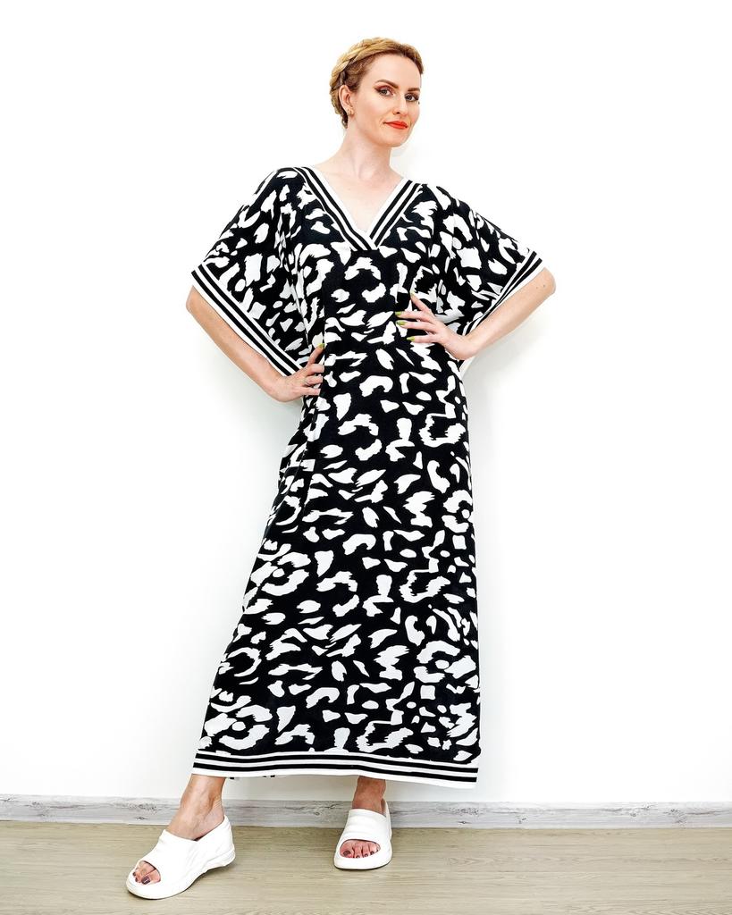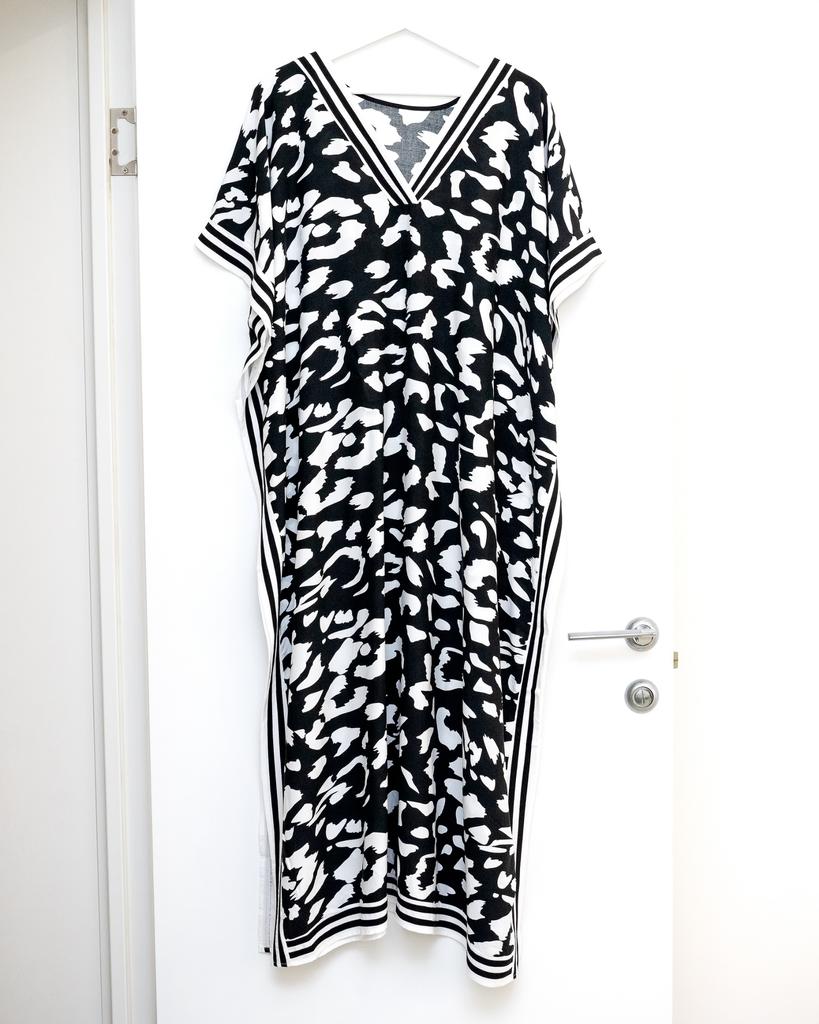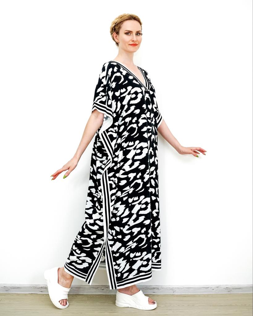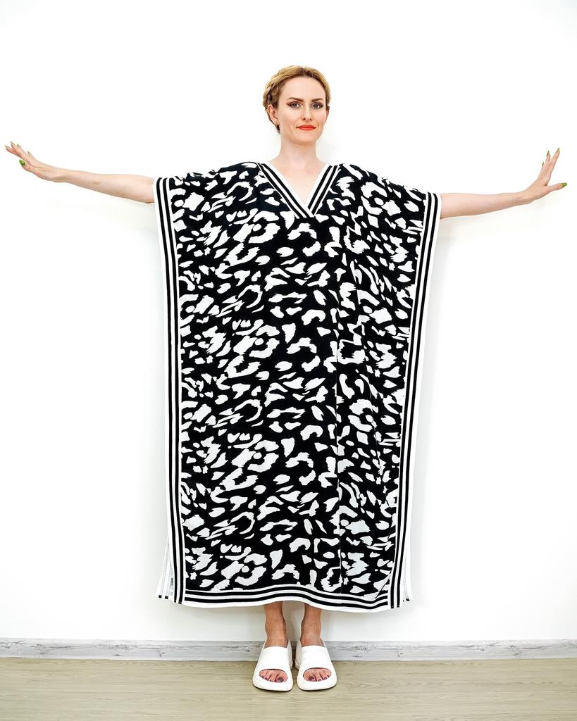 EDOLYNSA Plus Size Boho Black White Leopard Print Kaftan Beachwear Swimsuit Coverup For Women 2024 Summer Beach Dress Loose Caftan House Dresses Q1609 — buy online with free worldwide shipping!