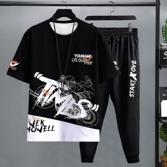 Introducing our Men's Sportswear Set of 2, featuring a stylish T-shirt and pants ensemble designed for comfort and versatility.