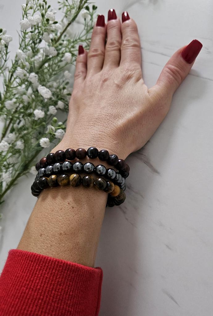 8mm Natural Stone Bracelet Set 3Pcs/set Rhodonite Rose Pink Quartzs Moonstone Amethysts Hematite Bracelets For Women Men Jewelry