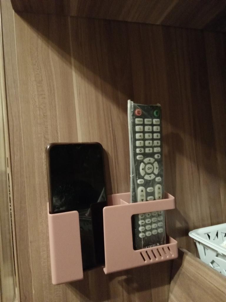 Made of strong plastic, holds well on the wall, convenient for charging your phone, now it has a remote control for the ceiling light, very happy with the purchase