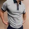 Men's Casual Polka Dot Print Short Sleeve Zipper POLO Shirt T-shirt