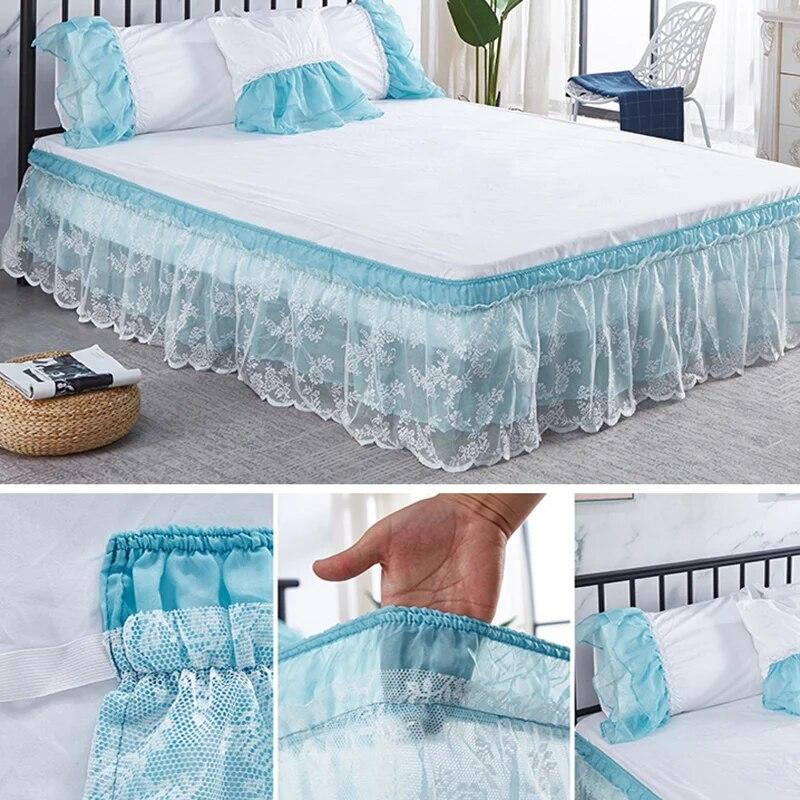 1.Transform your bedroom into a cozy and romantic retreat with this beautiful Princess lace Bed Skirt. This bed skirt features lace design that adds a touch of elegance to any bed.