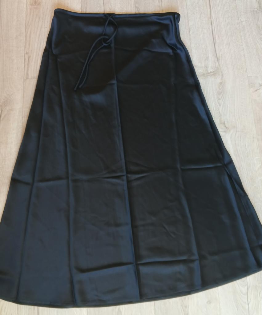 A Line Long Satin Skirts for Women Black Elegant High Waist Maxi Beige Skirts Silk Lace Up Long Skirt Women — buy online with free worldwide shipping!