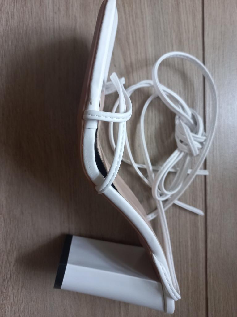 Size 38 fits a 24 cm leg. Chinese quality. The insole is peeled off in places. Minor scratches are present. Light, comfortable, heel 8 cm.