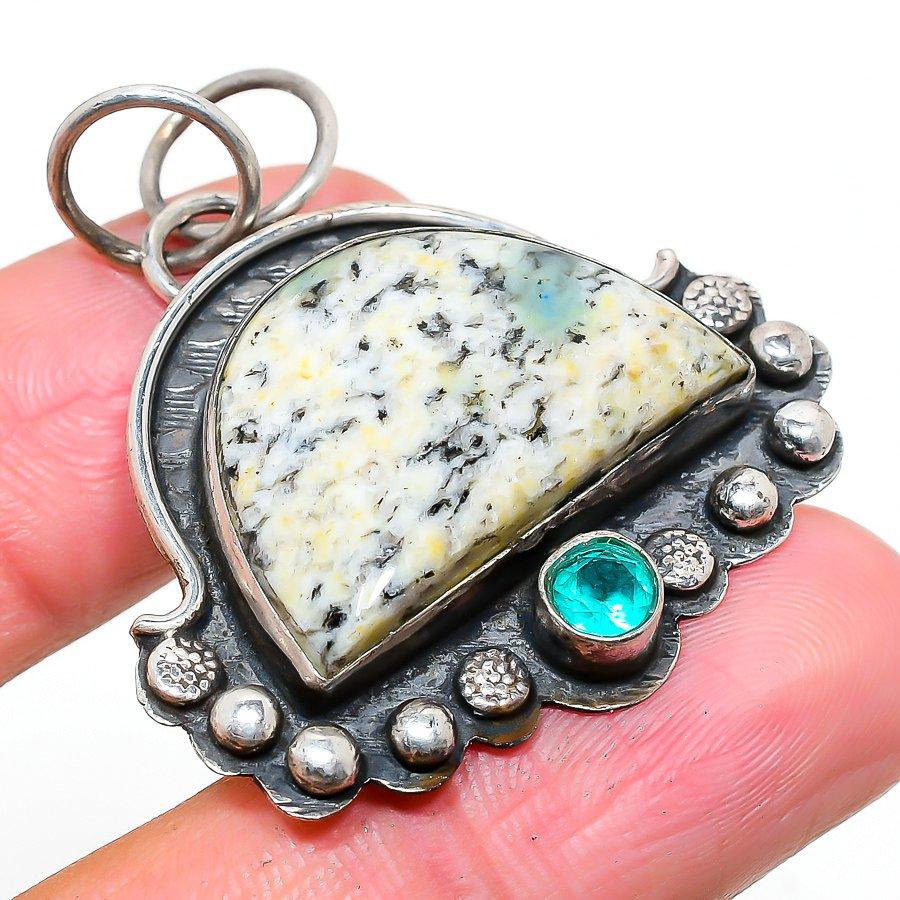 Natural K2 Blue Azurite,Tourmaline Stone 925 Sterling Silver Pendant 1.77"