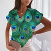Women's V-neck Peacock Print Short Sleeve Tops Harajuku Oversized Tee Shirt Fashion Elegant Tees Casual Pullover Summer Clothing