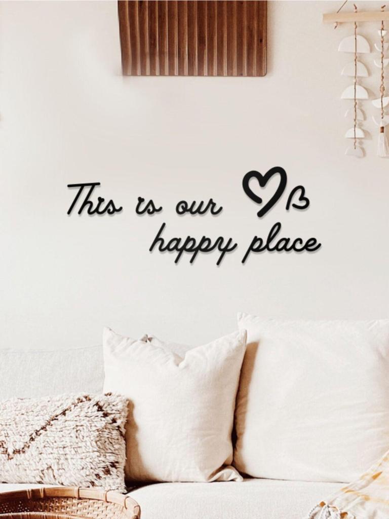 This Is Our Happy Place Written Decorative Wooden Wall Sticker Home Office Living Room Wall Decoration and Ornament