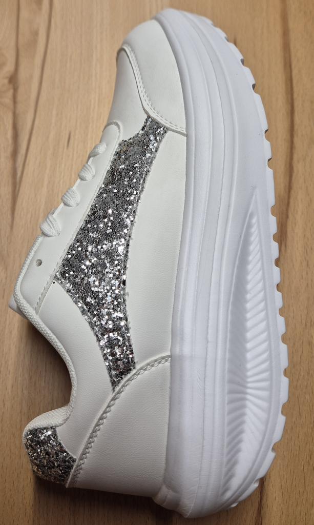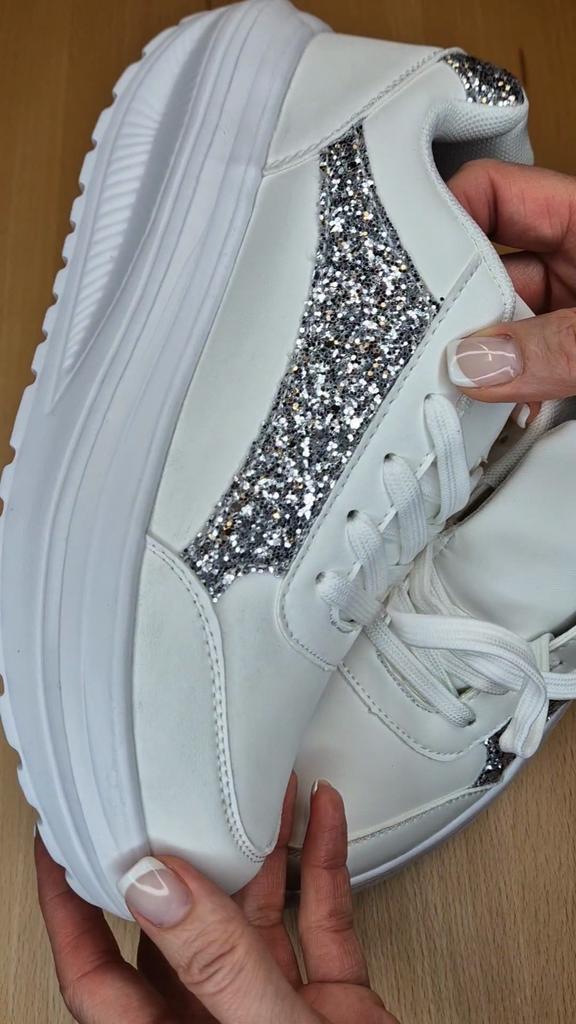 I love my new white sneakers with silver details. They are the most comfortable shoes I have had in a long time. The white and silver design is super elegant and combines perfectly with any outfit, whether casual or more dressed up.. The comfort they offer is incredible. The sole is cushioned and feels like you are walking on clouds. Furthermore, the material is of excellent quality and fits my foot perfectly, providing optimal support.. The silver details give a touch of sophistication and style to the sneakers. Without a doubt, they are the ideal complement to give a touch of shine to any outfit. I love them and I can't stop using them!