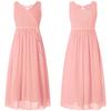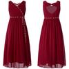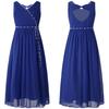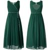 Flower Girls Dress Elegant Beaded Chiffon Party Summer Dress Ruched V Neck Sleeveless Dress for Bridesmaid Wedding