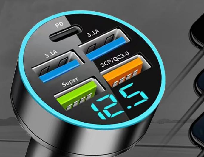 66W 5 Port Car Charger, 12-24V Quick Charge Automotive Fast Charging with USB PD Super QC 3.0 Cigarette Lighter Plug, Universal for SUV Truck RV 15 — buy online with free worldwide shipping!