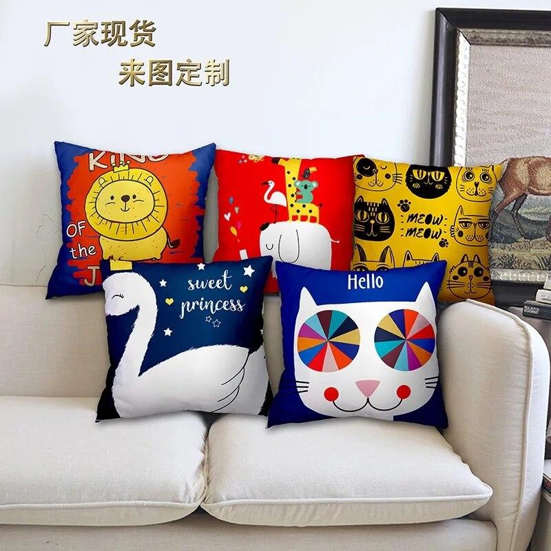 Office Seat Cushion Pillow Cartoon Cute Animal Pattern Print Pillow Case Bedroom Bay Window Cushion
