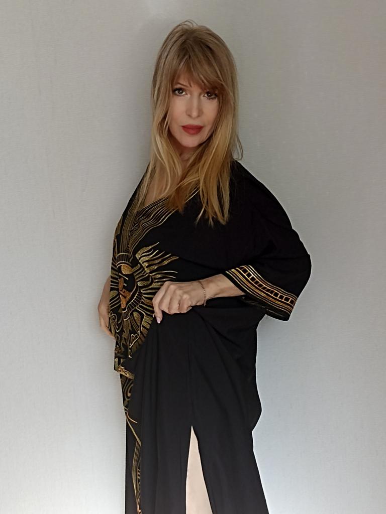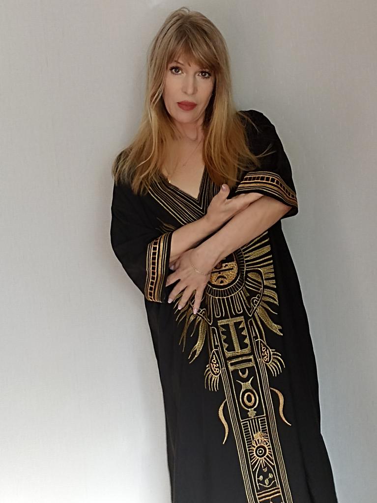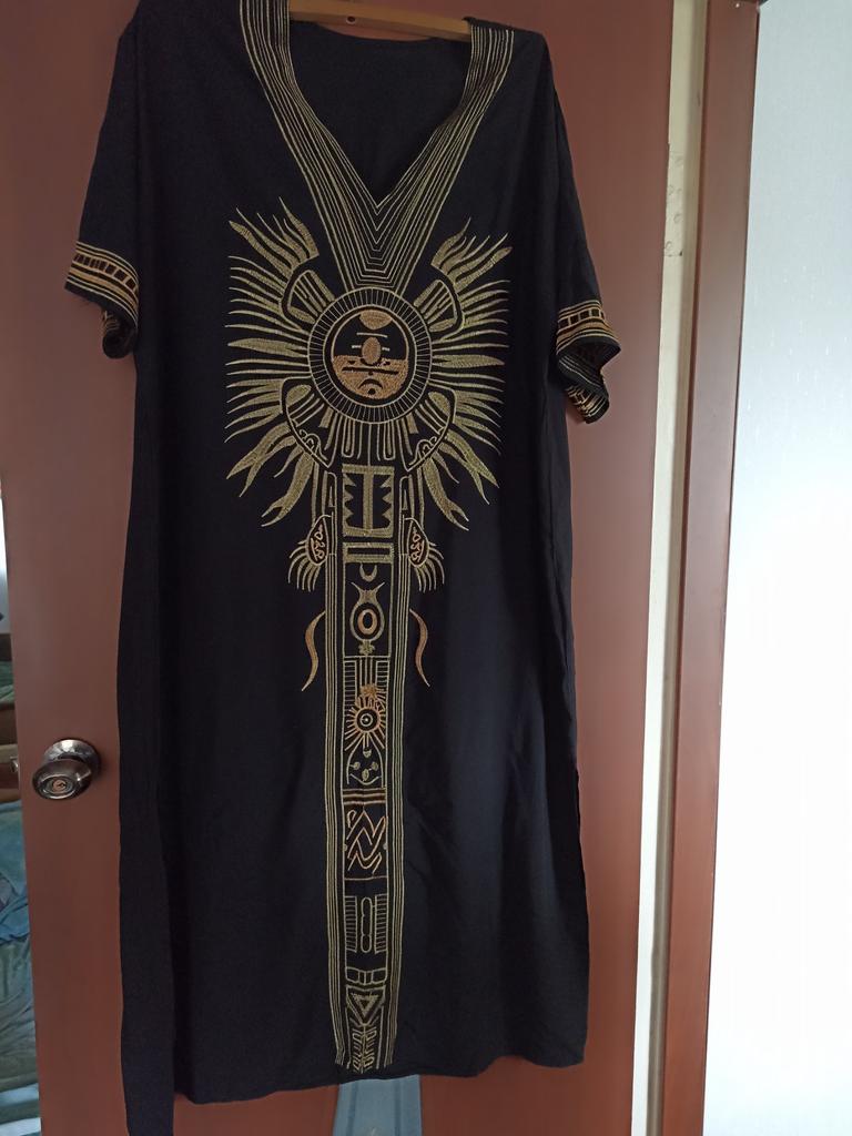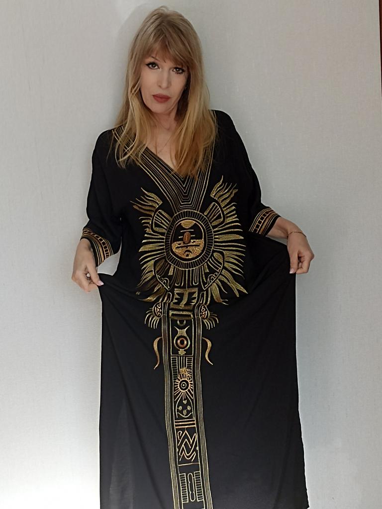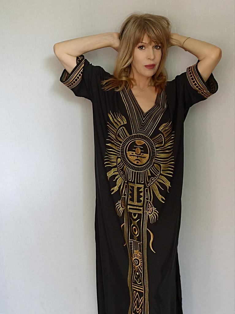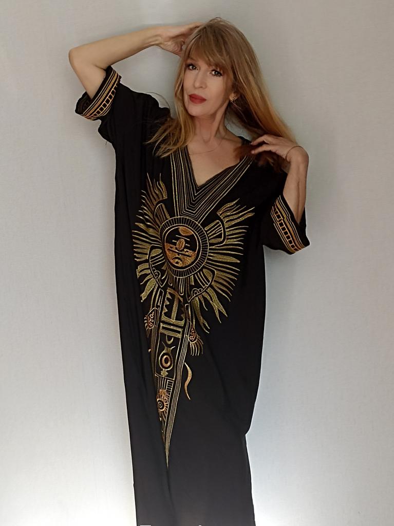 EDOLYNSA 2024 Vintage Plus Size Kaftan Ethnic Gold Embroidery Beach Dress Vacation Swimsuit Cover Up For Women Cozy V-neck Side Split House Robe — buy online with free worldwide shipping!