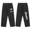 Y2K Women Korean Fashion Streetwear Casual Letter Print Straight Wide Leg Pants Baggy Denim Trousers Men Low Rise Jeans Clothes