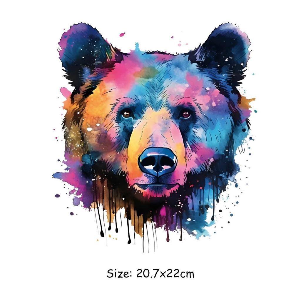 1/2pcs Colorful Brown Bear Face Heat Transfer Sticker, DIY Iron-On Decals For Clothes, Pillow Decorating, Clothing Supplies & Appliques