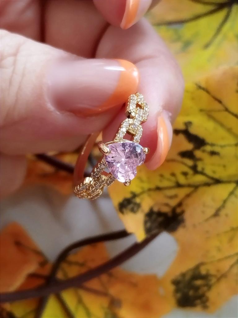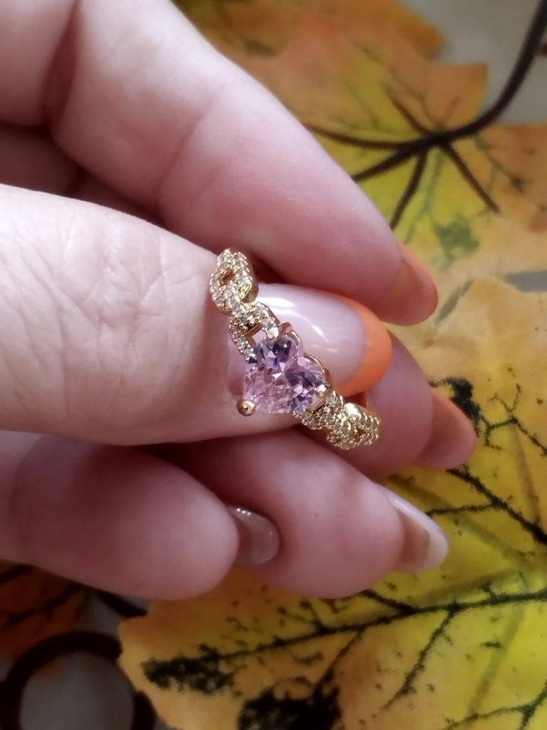 Elegant Pink Zircon Heart Rings for Women Romantic Love Heart Engagement Ring Gold Color Dainty Wedding Band Boho Jewelry — buy online with free worldwide shipping!