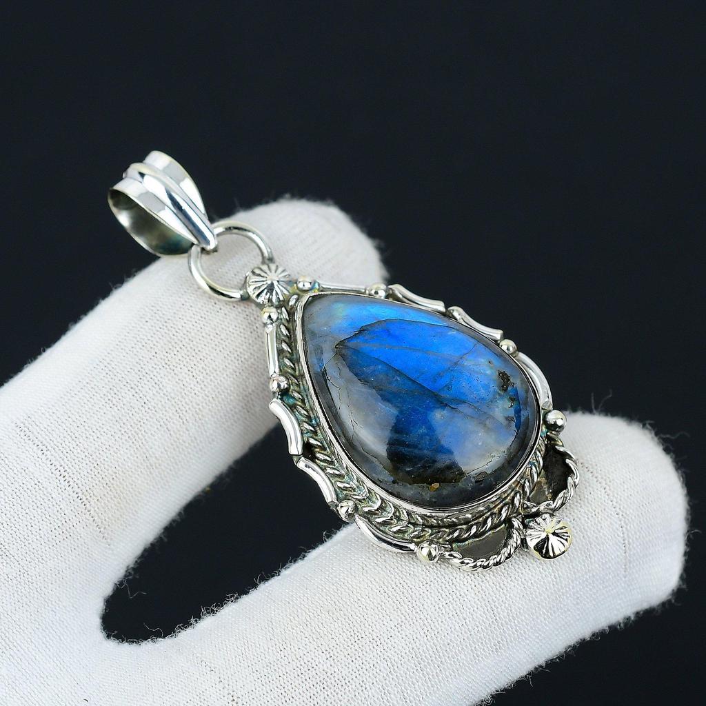 Blue Flashy Labradorite Pendant, Natural Labradorite Jewelry, 925 Sterling Silver Jewelry, Handmade Jewelry Pendant, Unisex Pendant For Gift — buy online with free worldwide shipping!