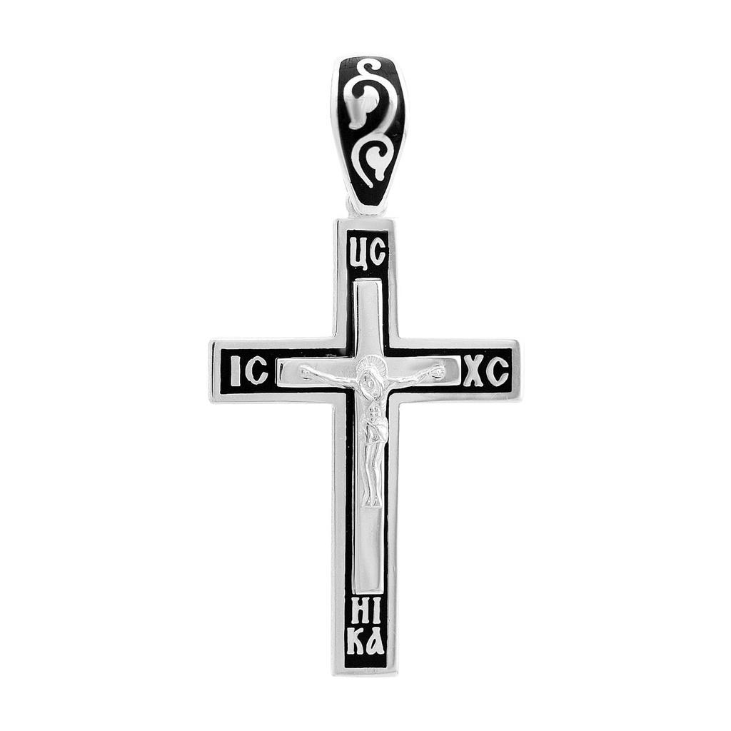 Orthodox cross pendant "Save and Preserve" with enamel and blackening
