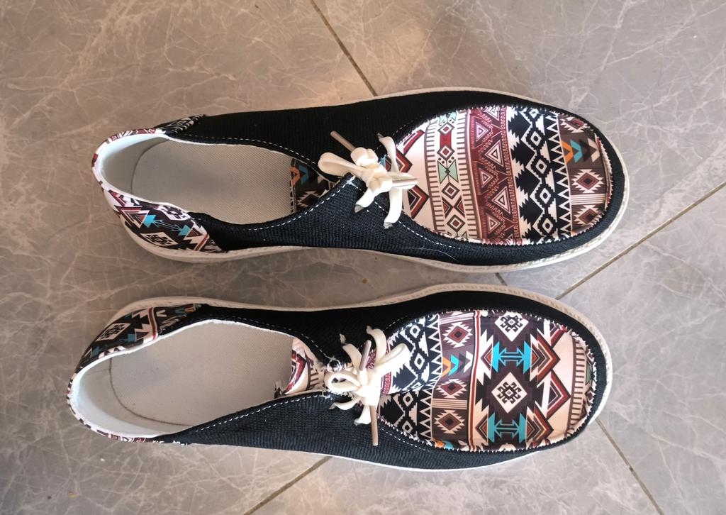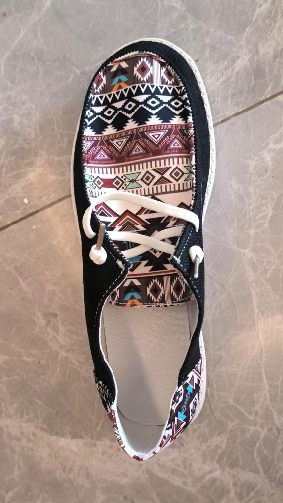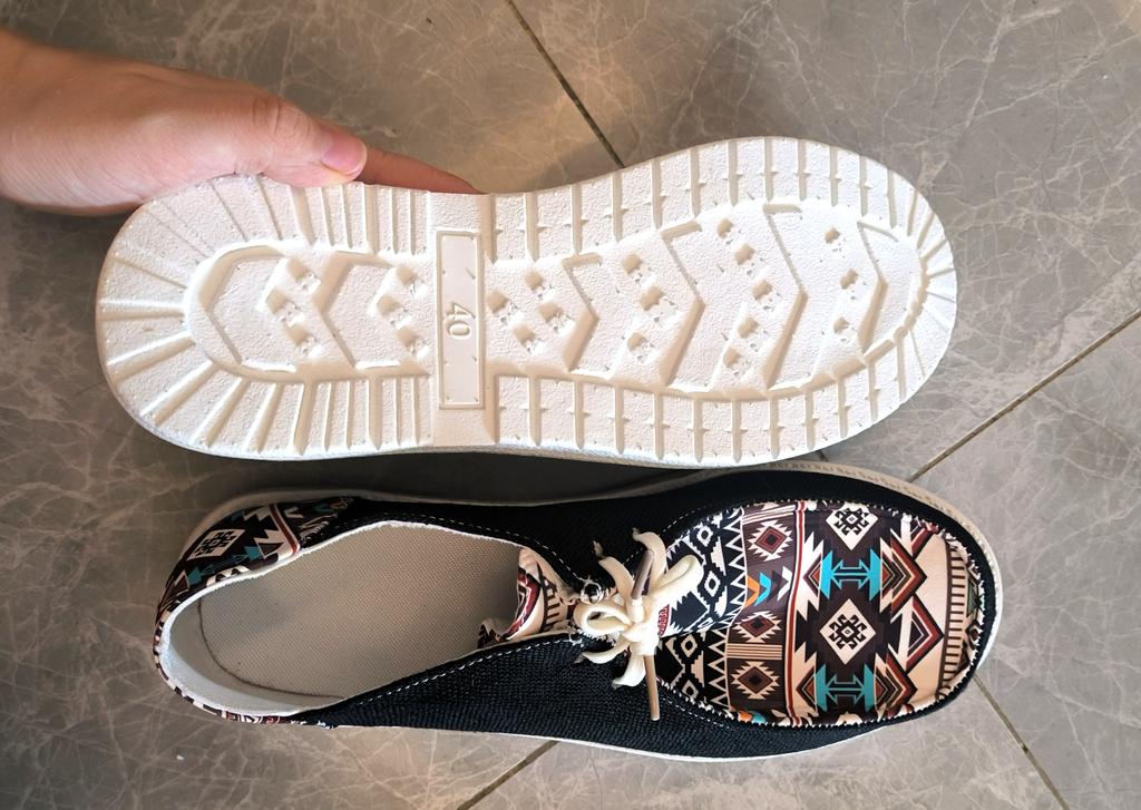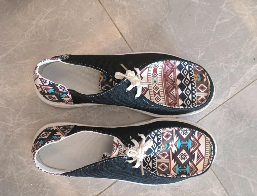 Women's Tribal Pattern Canvas Shoes, Casual Round Toe Low Top Flat Sneakers, Lightweight Outdoor Walking Shoes — buy online with free worldwide shipping!