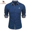 Camel Spring and Autumn New Fashion Men's Fashion Check Color Block Business Slim Fit Casual Shirt Embroidered Brand Long Sleeved Shirt