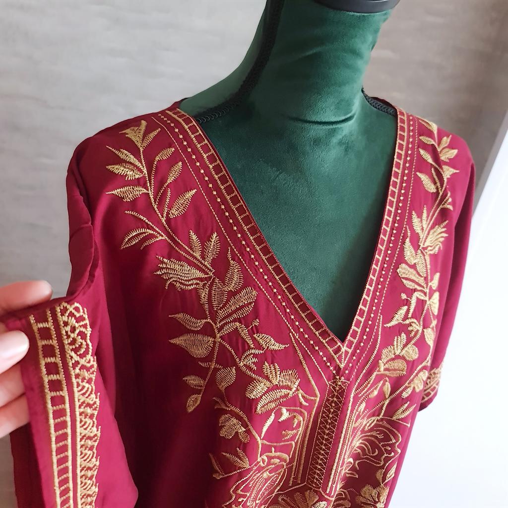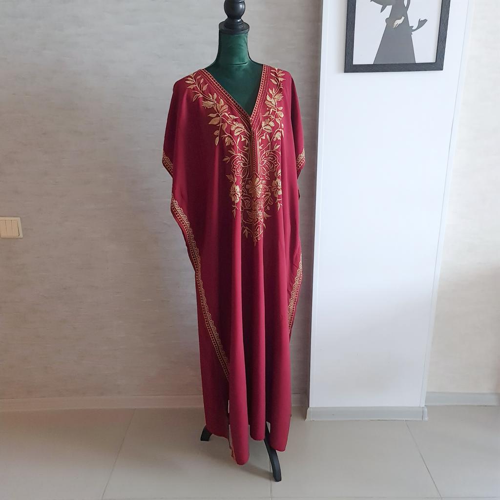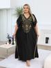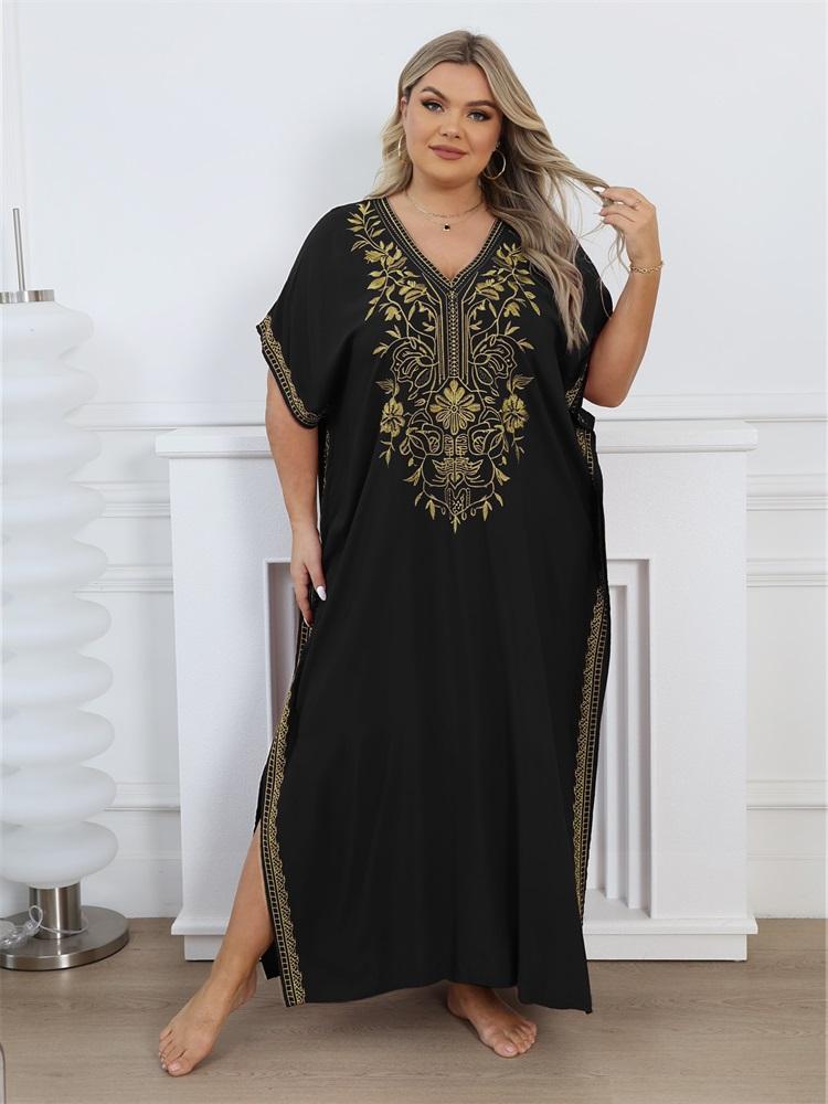 EDOLYNSA 2024 Gold Thread Embroidered Plus Size Casual Vacation Beach Dress Summer Swimsuit Coverup For Women V Neck Bat Sleeve Black Kaftan — buy online with free worldwide shipping!