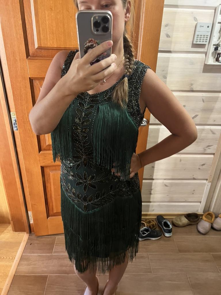 1920S Vintage Gatsby Ball Gown, Round Neck Sequin Embroidered Suspenders Large Size Dress