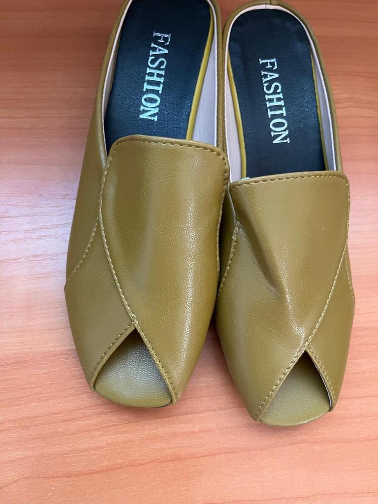 Leather Yellow Sandals and Slippers Women Summer Open-toed Flat Fish Mouth Fashion All-match Thick Heel Half Slippers