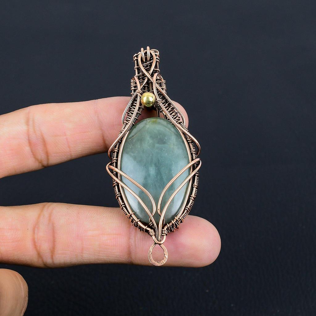 Aquamarine Gemstone Handmade Pure Copper Wire Wrapped Pendant Jewelry