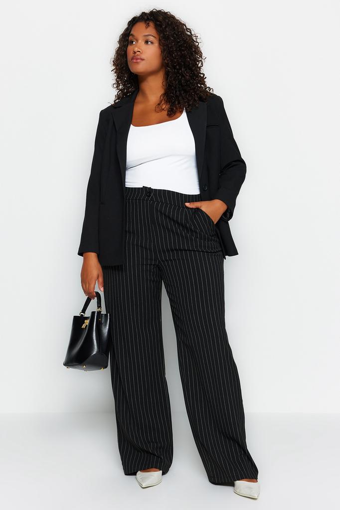 Women's Plus Size Trousers Fashion New Season Black Striped Woven Trousers
