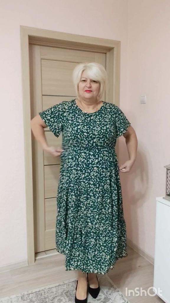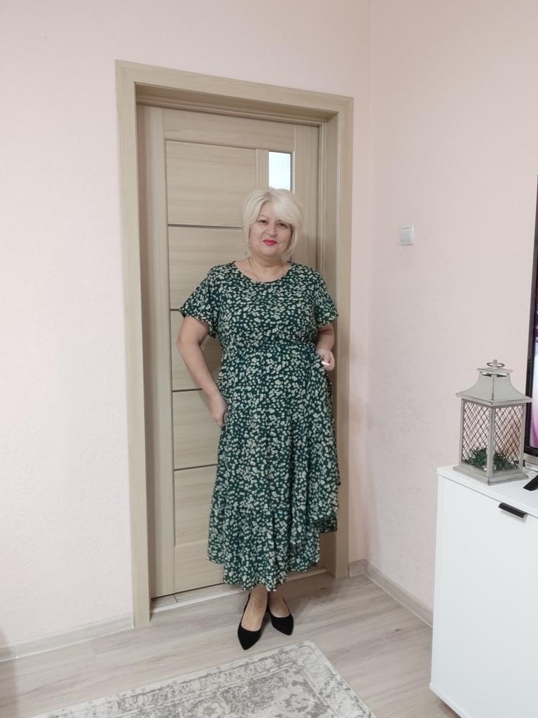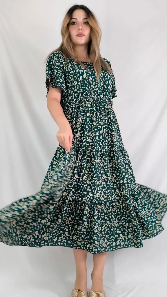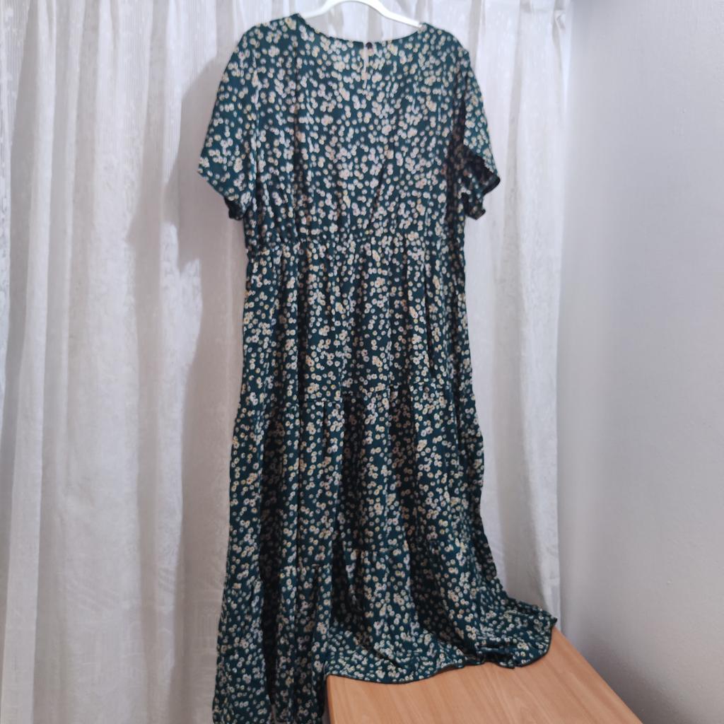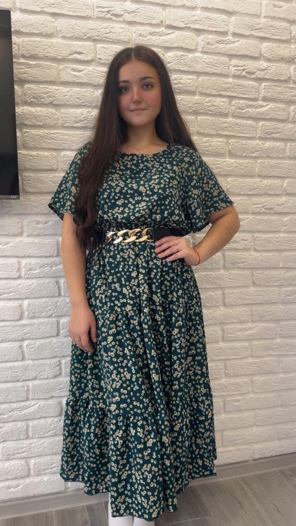 🌺Floral print dress. 🌺Plus sizes: XL-4XL 🌺I'm wearing size XL, it will fit sizes 50+. 🌺Dress in one color, beautiful dark green with small flowers. 🌺The dress has an A-line cut and a skirt with three tiers. The sleeves are of the butterfly type.. 🌺The fabric is quite heavy, flows beautifully with every movement. The tailoring is very neat. 🌺Length of the midi dress. 🌺A beautiful dress that will be suitable for spring-summer.👍😘😘😘