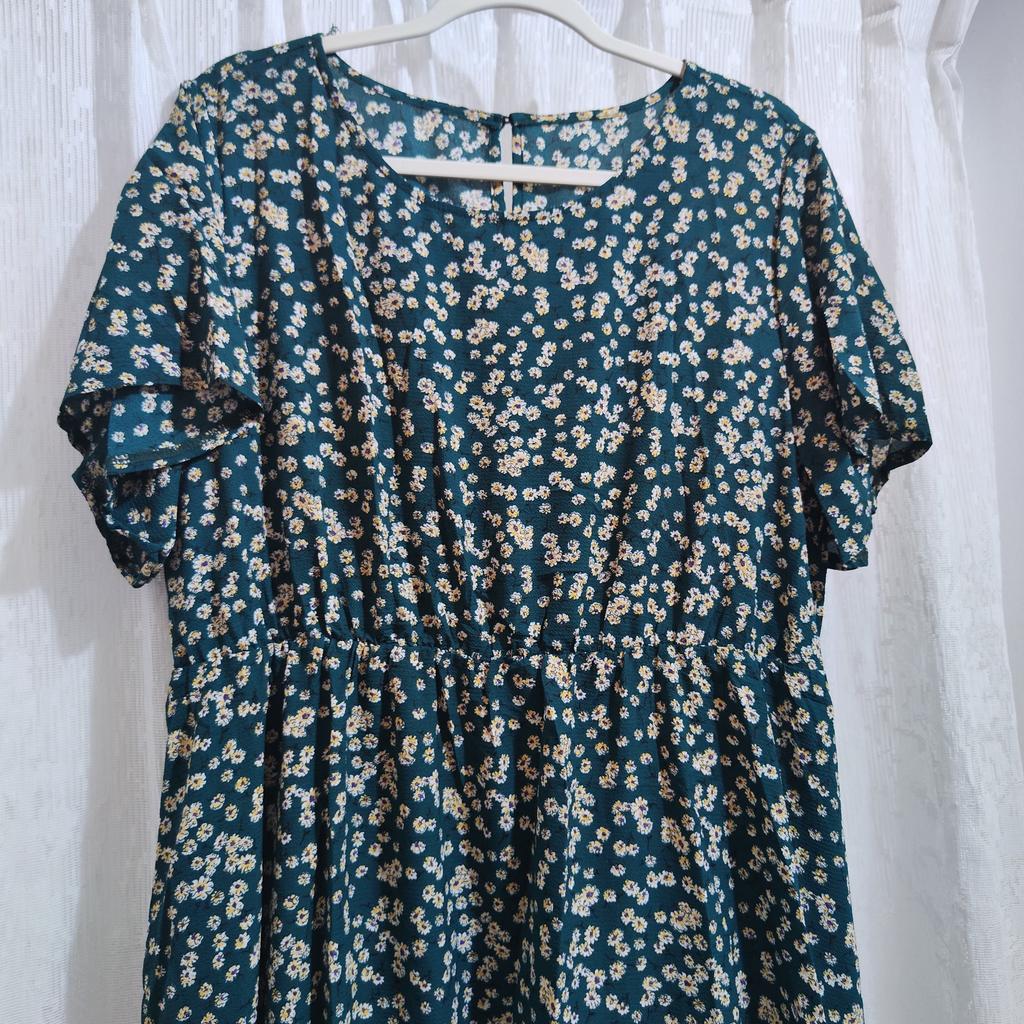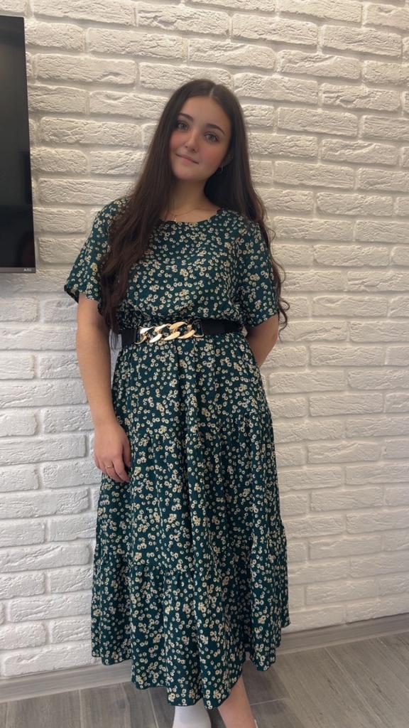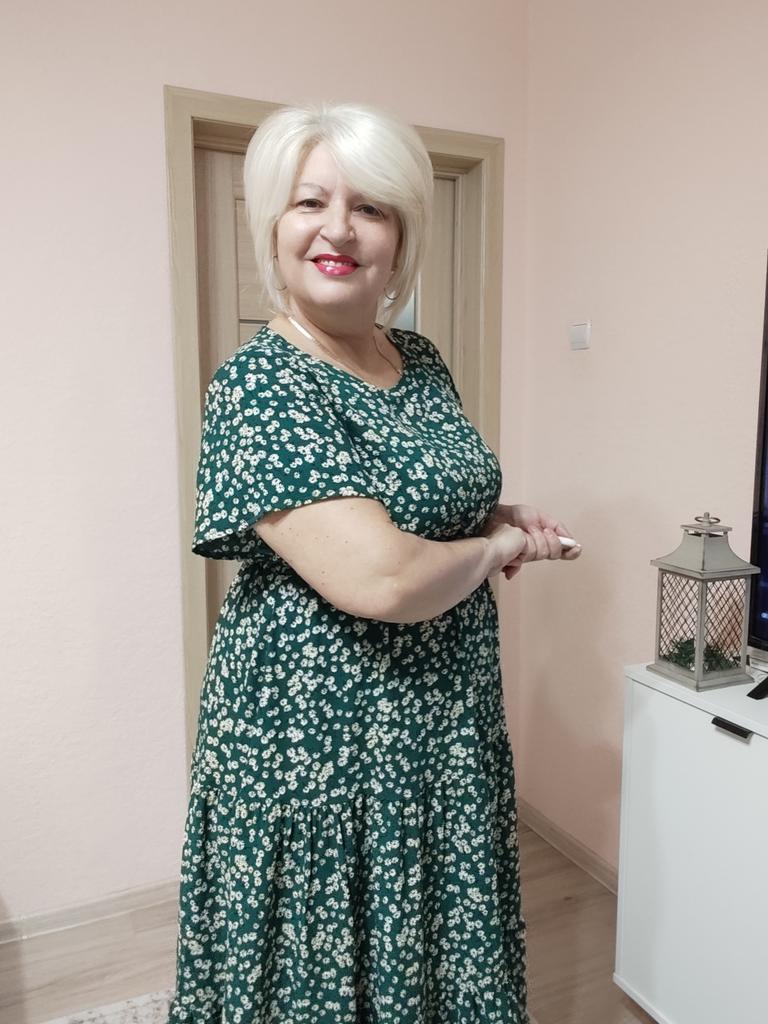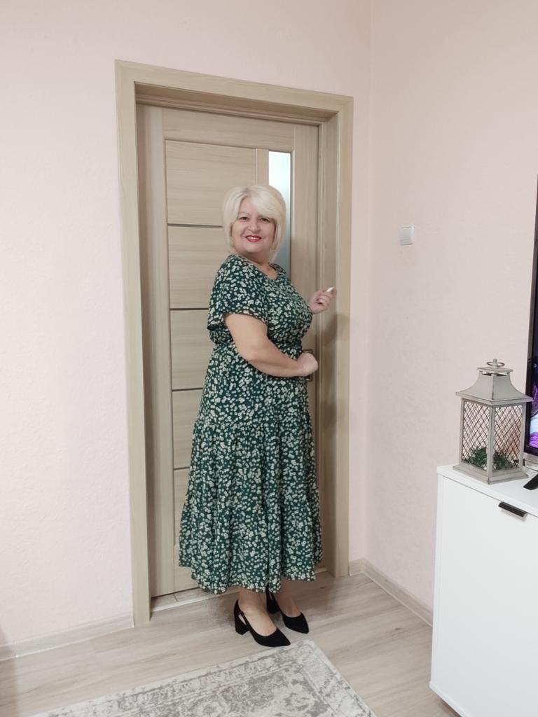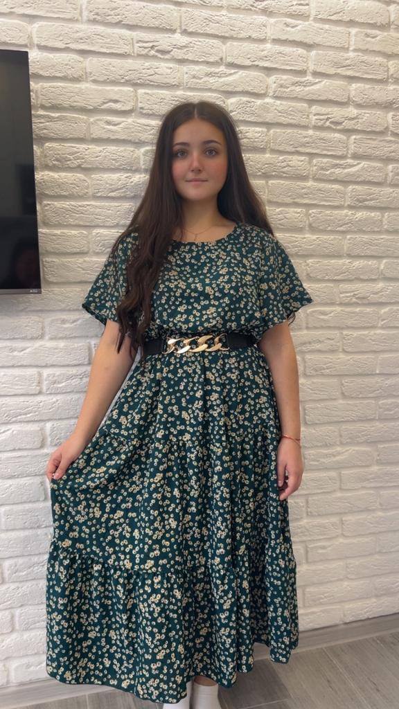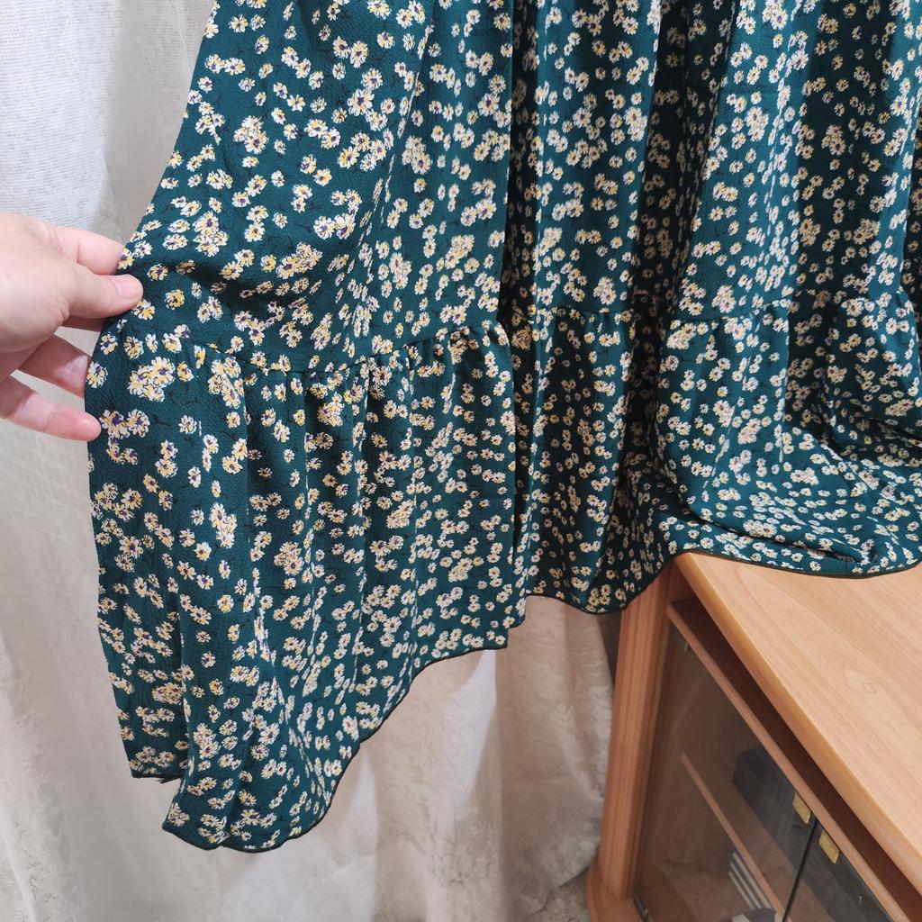 🌺Floral print dress. 🌺Plus sizes: XL-4XL 🌺I'm wearing size XL, it will fit sizes 50+. 🌺Dress in one color, beautiful dark green with small flowers. 🌺The dress has an A-line cut and a skirt with three tiers. The sleeves are of the butterfly type.. 🌺The fabric is quite heavy, flows beautifully with every movement. The tailoring is very neat. 🌺Length of the midi dress. 🌺A beautiful dress that will be suitable for spring-summer.👍😘😘😘